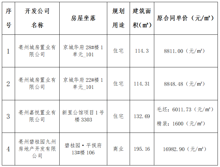 根据市住房发展中心《关于将商品房退房房源纳入<我家亳州>APP网上公开销售的通知》(亳住房〔2020〕28号)文件要求,现将已经撤销商品房买卖合同备案的房源纳入《我家亳州》APP进行公开销售并进行公示:
